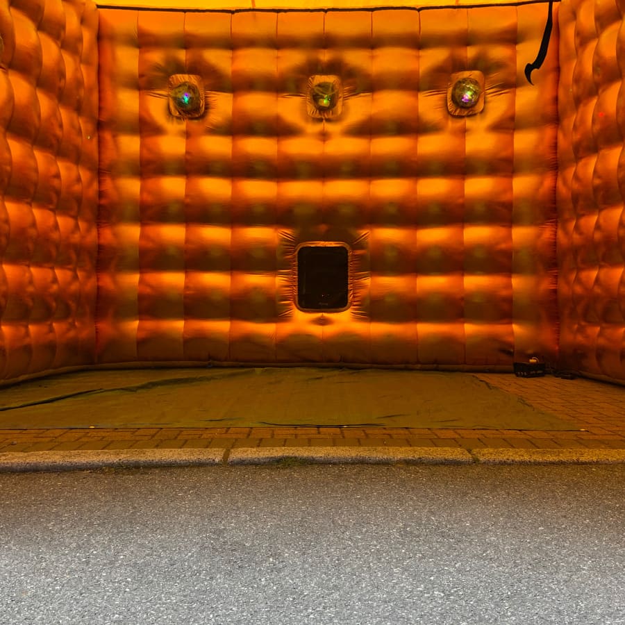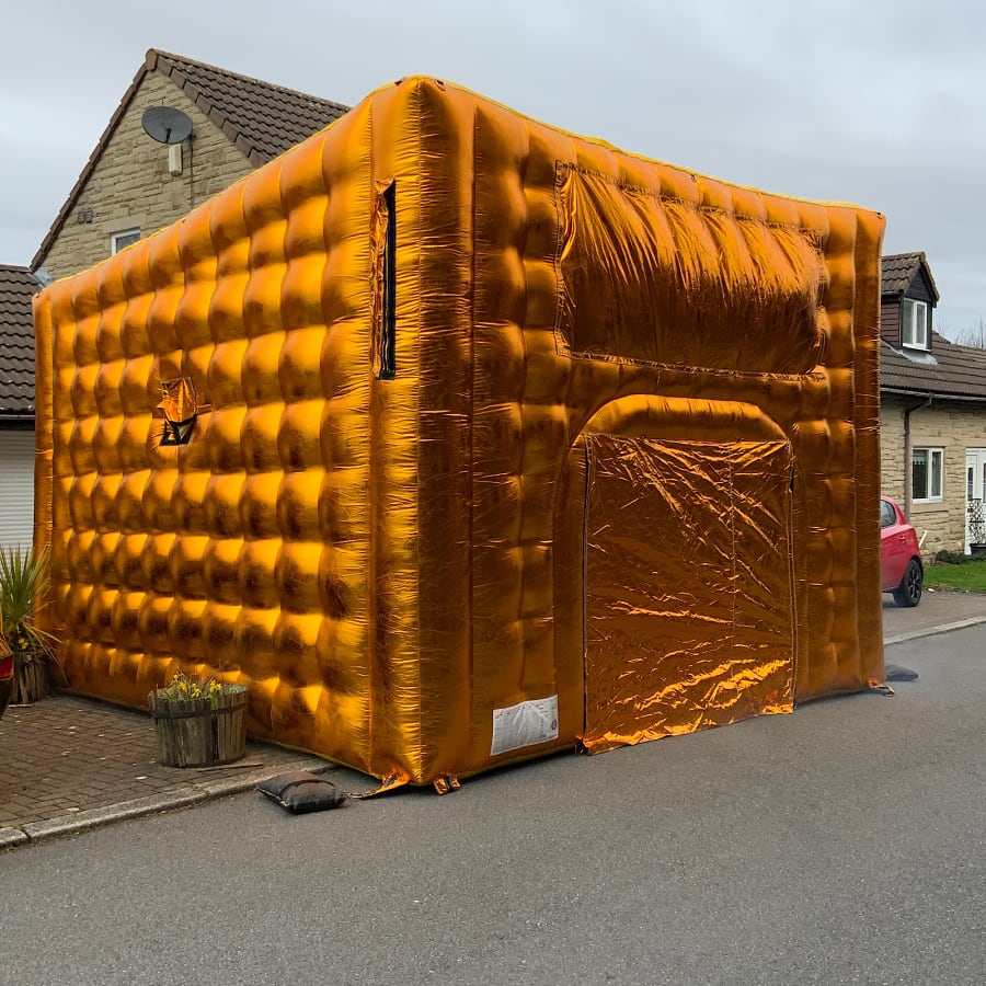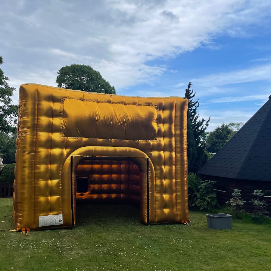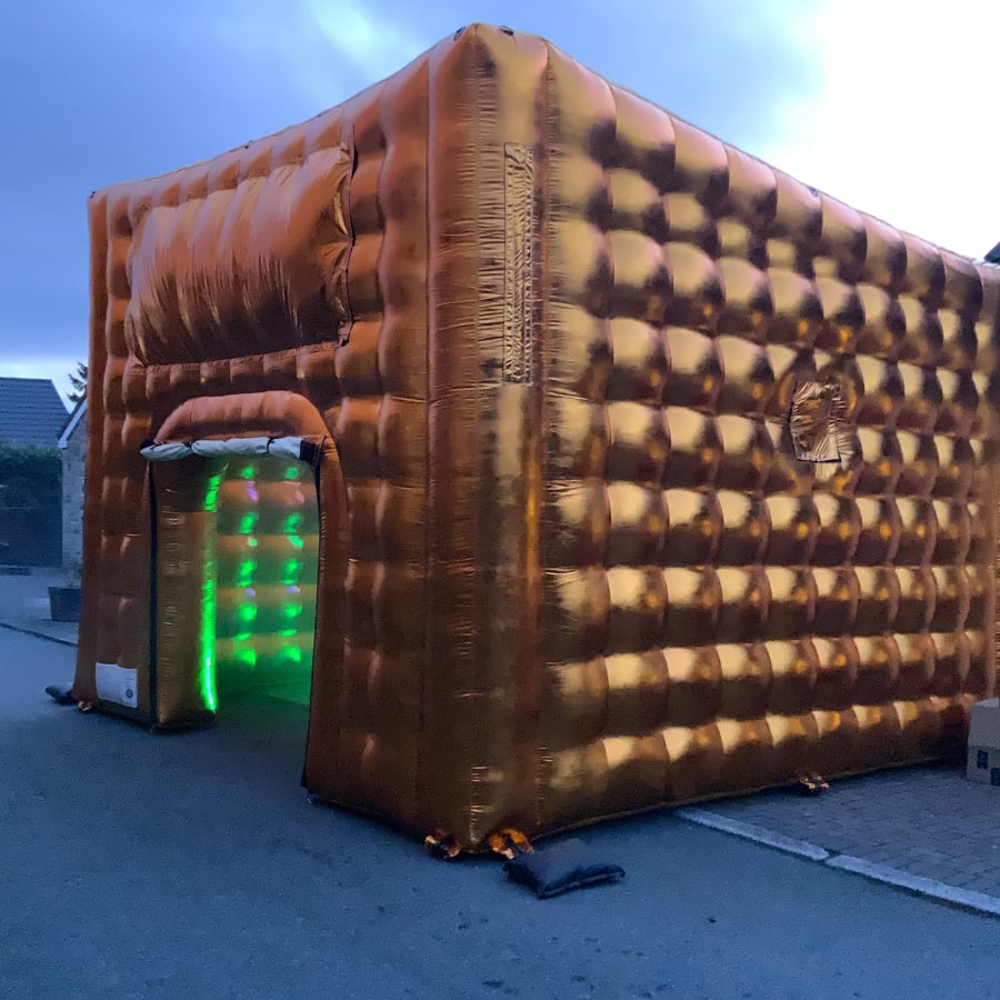 Do you want to make your party truly unforgettable?! Then there’s no better way than hiring our pop up inflatable nightclub! Standing at a lofty 12 feet tall, with its gold finish shimmering and dazzling, your guests will be absolutely blown away when they see our inflatable nightclub at your event. Inside it is exactly like a real nightclub with all the features you’d expect: